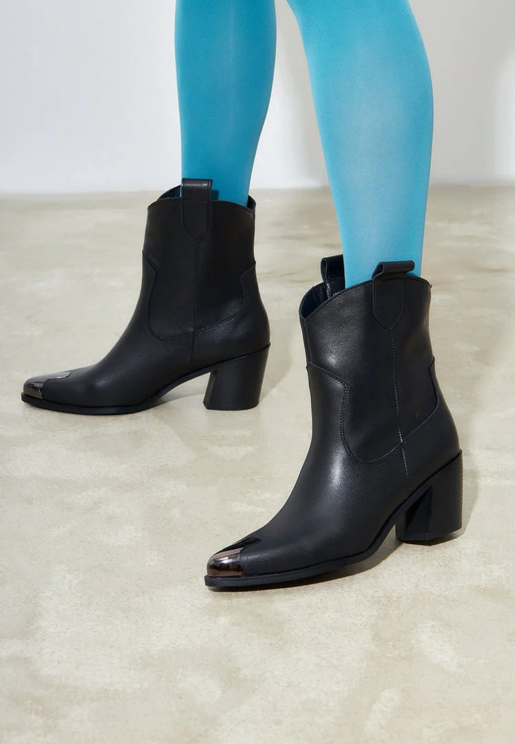 Step out in style with these fashionable cowboy boots. Crafted with a soft leather upper and comfortable block heel, these ankle boots offer everyday convenience and long-lasting comfort. The pointed tip and classic silhouette make these a timeless look that pairs perfectly with any outfit.