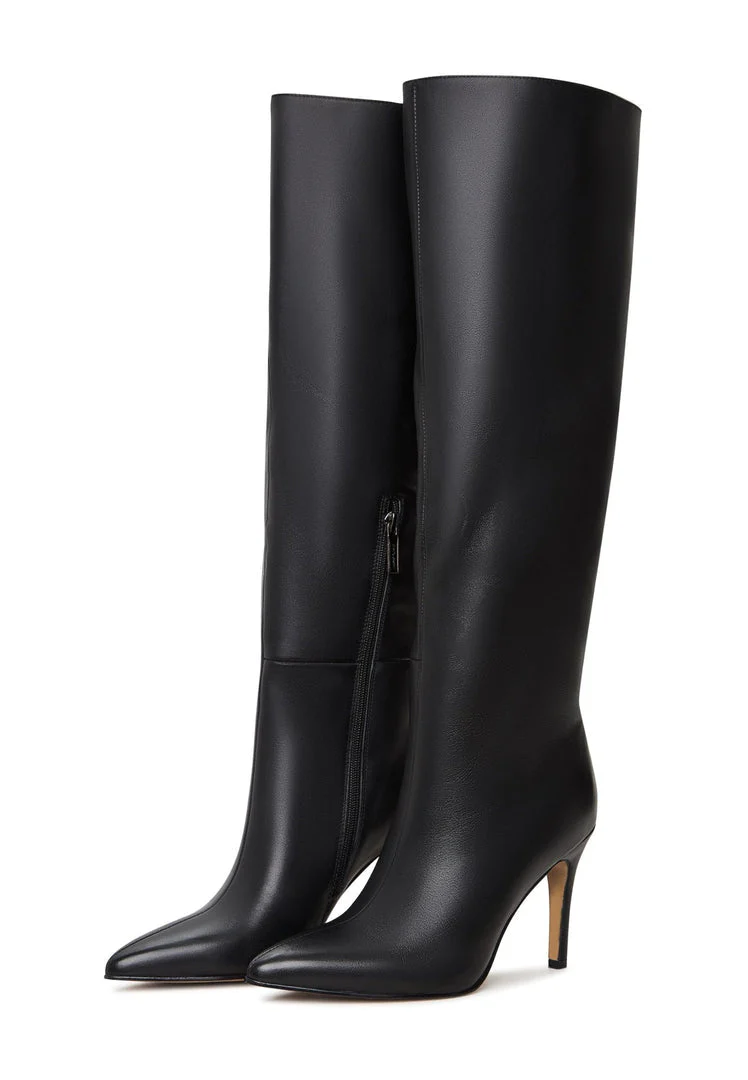 Realza tu estilo con estas clásicas botas negras hasta la rodilla. Confeccionadas en piel sintética de alta calidad, estas botas presentan un diseño elegante y minimalista, punta afilada y un tacón alto estilizado. Perfectas para cualquier ocasión, desde la oficina hasta salidas nocturnas, estas versátiles botas son un básico imprescindible en tu armario.