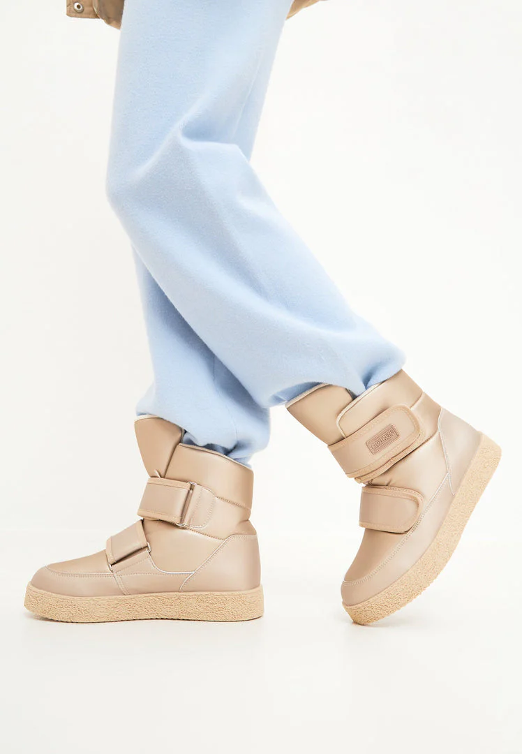 High-Top Winter Boots with Velcro Straps - Beige