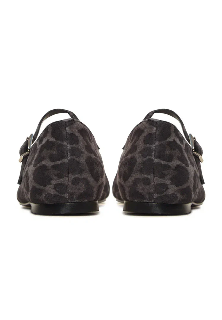Elevate your everyday style with these chic Mary Jane flats featuring a sophisticated leopard print in a deep, versatile shade. The soft suede upper enhances their luxurious feel, while the structured square toe and delicate strap create a polished yet playful look. Designed for both comfort and elegance, they are the perfect addition to any fashion-forward wardrobe.