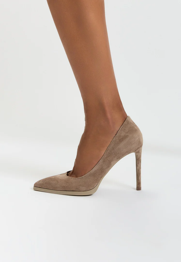 Step up your game with the confidence and edge of the Skyline Suede Stilettos. These sleek and slender heels bring instant glamour to any outfit with their sky-high stiletto heel and timeless pointed toe. Crafted for sophistication and designed for that leg-lengthening effect every step of the way.