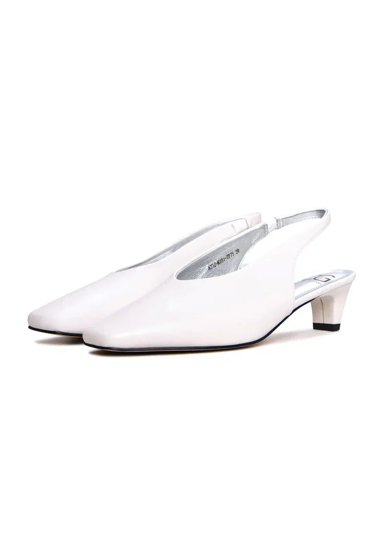 Slingback Heels with Square Toe - White